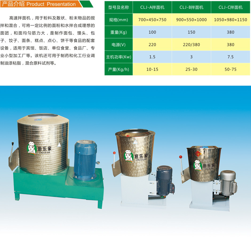 我廠高速攪拌機用雙層優質不銹鋼制作,結構合理,安全衛生,經久耐用,無噪音,效率高,速度快,一次拌料只需幾分鐘,拌料均勻,廣泛適用于散狀物品和粉狀拌料和攪拌,可與粉絲粉條機、面條機、掛面機、米線機、朝鮮冷面機等配套使用。也是單位、廠礦企業食堂的必備設備。